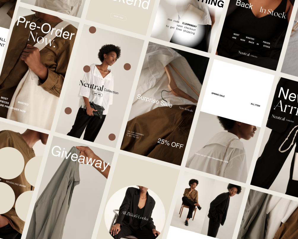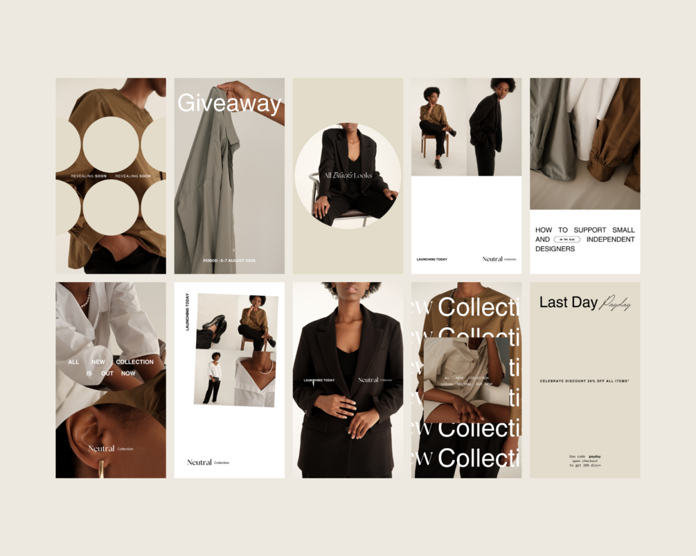 Cayla Social Stories Pack color palette is minimalist but confident, without losing sophistication, so you can easily integrate your color palette to match your brand. So everything is fully editable.